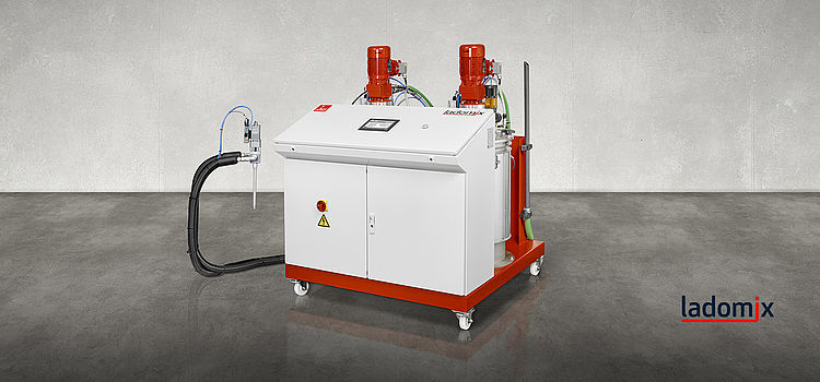 使用体积为60 L的容器供料,通过标准配置的真空吸枪或可选配件中的填料泵自动填料。传感器控制液位。通过安装在压力罐内的三相异步电动机驱动的齿轮泵实现定量输出。所有标准配置的齿轮泵都具有过压保护功能。Ladomix G-SF由触摸屏定量计算机控制。此机器配有一台带2K阀和一次性静态混合管的静态混合系统。当混合管中的混合材料固化时可及时更换,操作过程简单、成本低、节省时间,并且由于不需要冲洗混合管,不会造成环境污染。